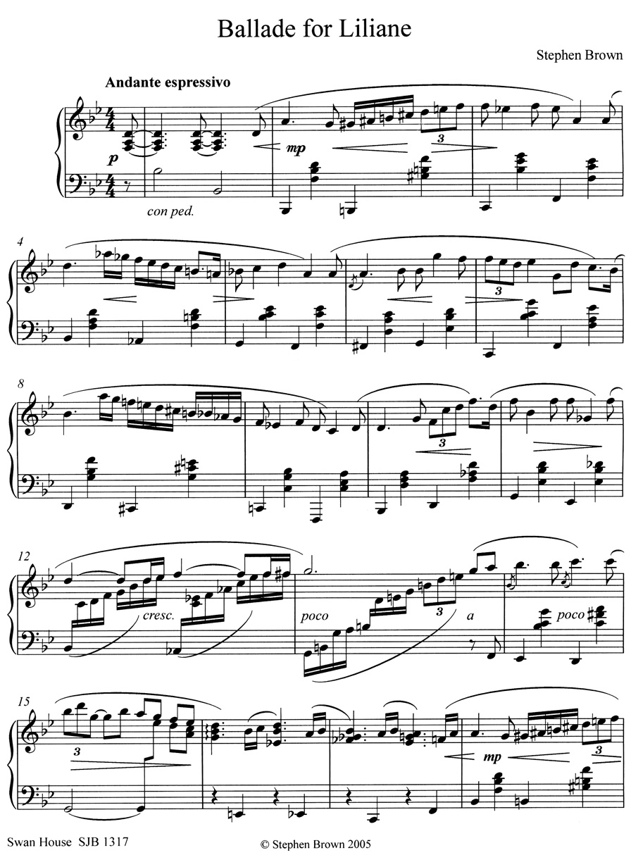 Ballade for Liliane Score, Ballade for Liliane: